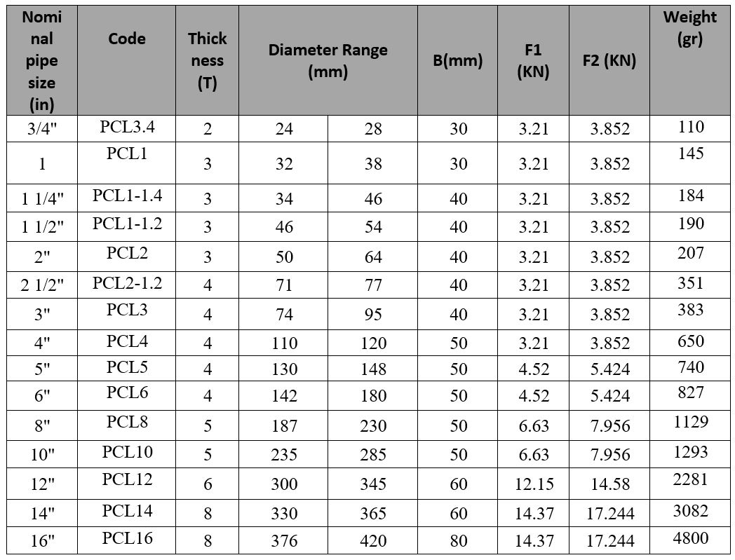 ویژگی های بست سنگین پای دار PCL ۲ اینچ – ۳/۴ سایز