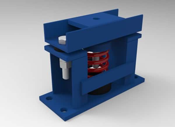 لرزه گیر فنری مهاردار (Spring Isolator with Restraint) یک نوع از تجهیزات کنترل ارتعاش است که برای کاهش انتقال ارتعاشات تولید شده توسط تجهیزات مکانیکی به ساختار ساختمان طراحی شده است. این لرزهگیرها از فنرهای فولادی برای جداسازی تجهیزات از ساختار استفاده میکنند و در عین حال با داشتن سیستم مهار از حرکت بیش از حد و آسیب به تجهیزات یا سیستم پایپینگ در شرایط نامتعادل یا در هنگام زلزله جلوگیری میکنند. لرزهگیرهای فنری مهاردار عمدتاً در سیستمهای HVAC (گرمایش، تهویه و تهویه مطبوع)، پمپها، فنها و سایر تجهیزات ارتعاشی استفاده میشوند.